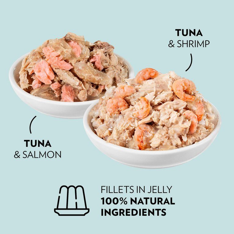 Tonijn 55%, garnalen 4%, rijst 1%, water 40%